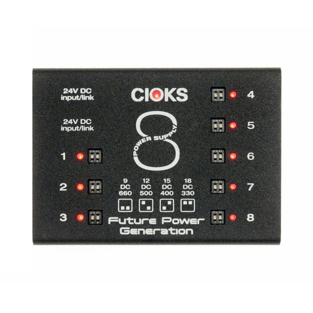 CIOKS 8 is our largest switch-mode power supply expander and it features 8 isolated outlets which each deliver 9V DC...