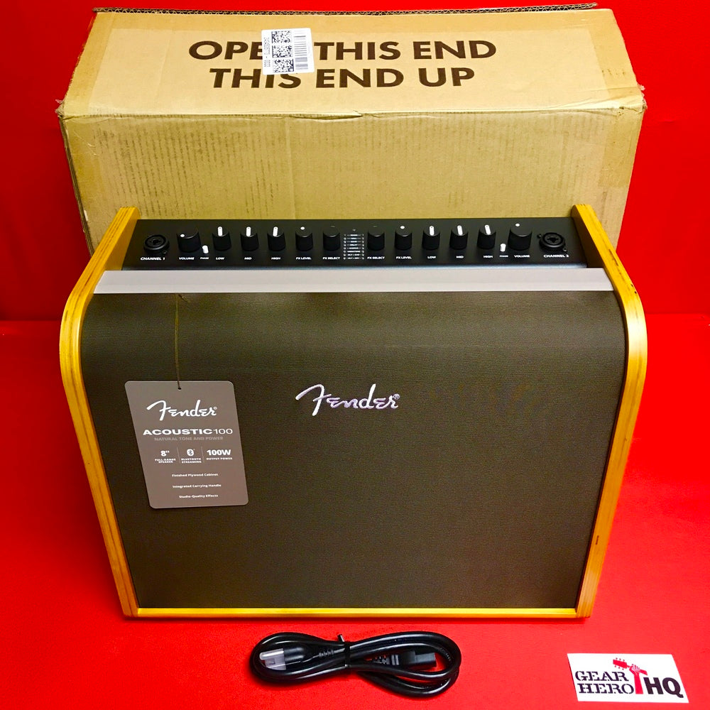 Fender's Acoustic 100 amplifier delivers full, natural tone for acoustic-electric guitar and microphone. Its specially designed wood shell complements the...