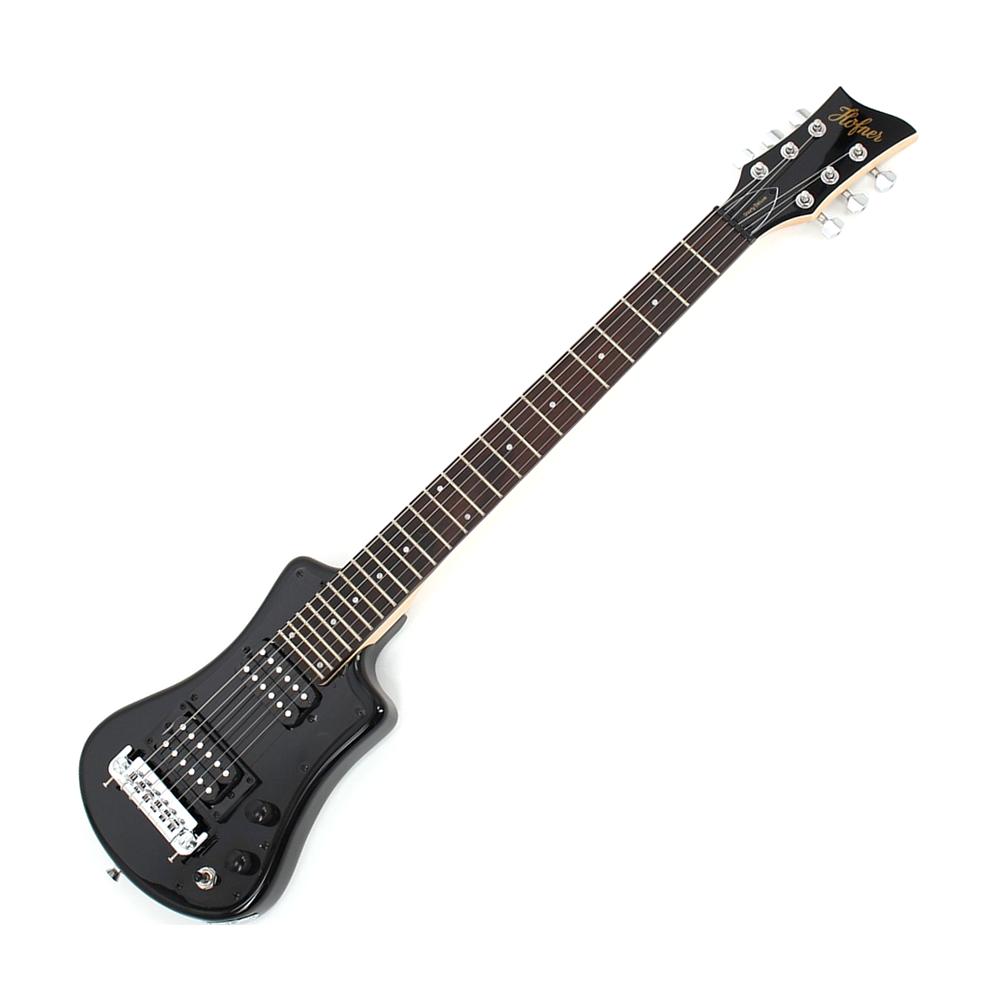 Hofner HCT-SH-DLX-BK-O Deluxe Shorty Electric Travel Guitar w/Gig Bag, Black