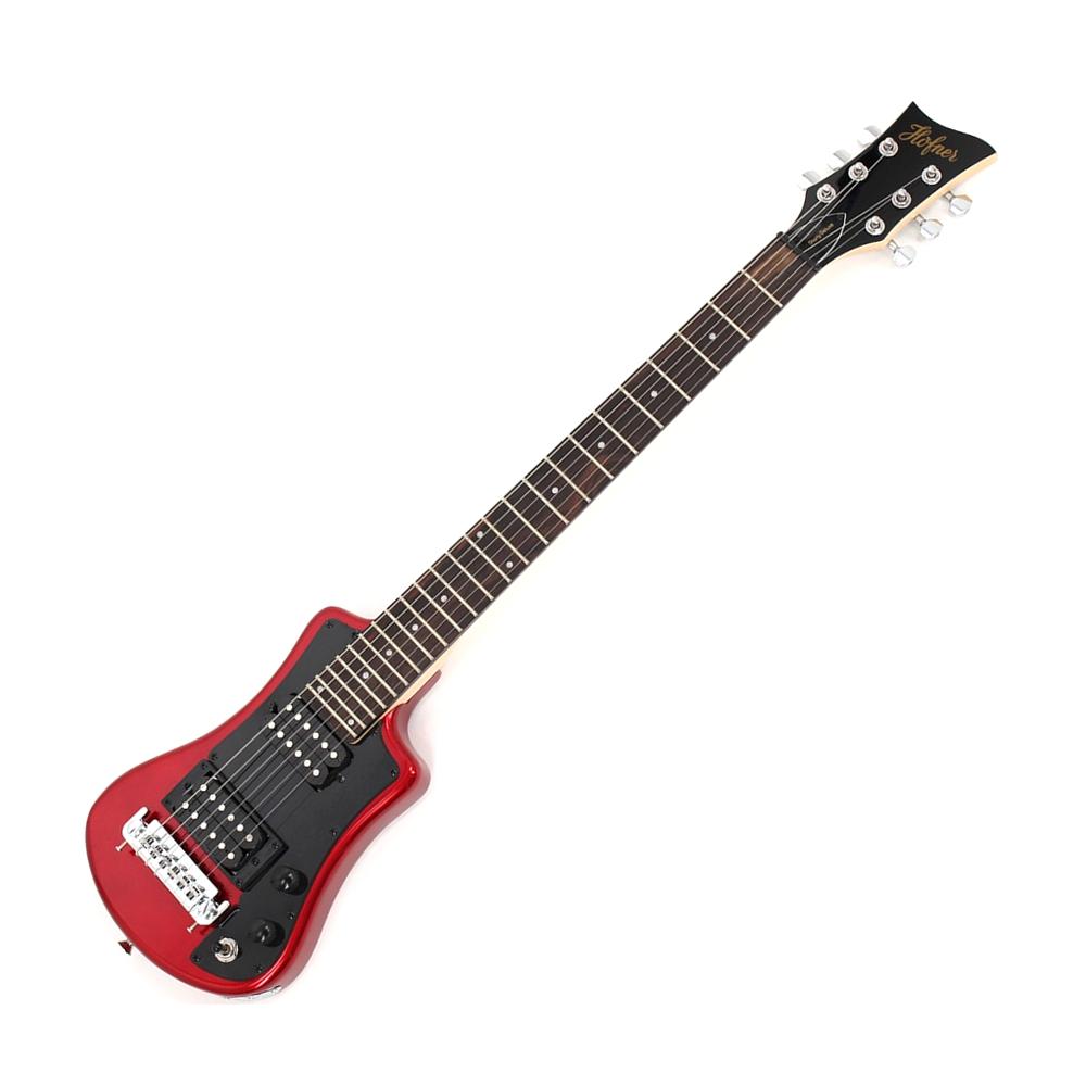 Hofner HCT-SH-DLX-R-O Deluxe Shorty Electric Travel Guitar w/Gig Bag, Red