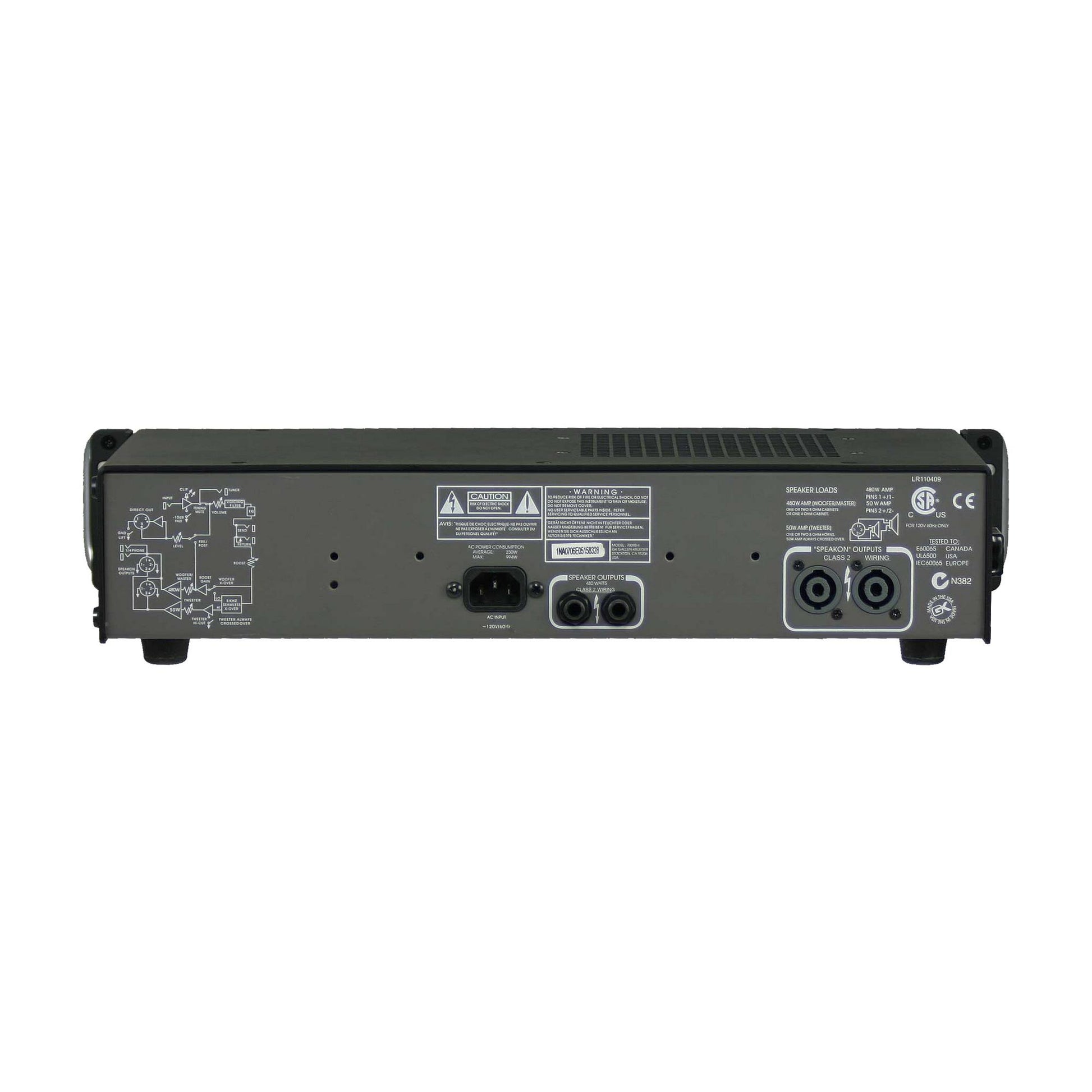 Analog power amp and power supply for classic feel and hard hitting punch. Harmonic Complexity Boost control adds tube like harmonics and signature "GK growl" using G.I.V.E. technology. Big Iron Dual rail Analog power amp and toroidal transformer provide the current required to control the speakers at high volume.