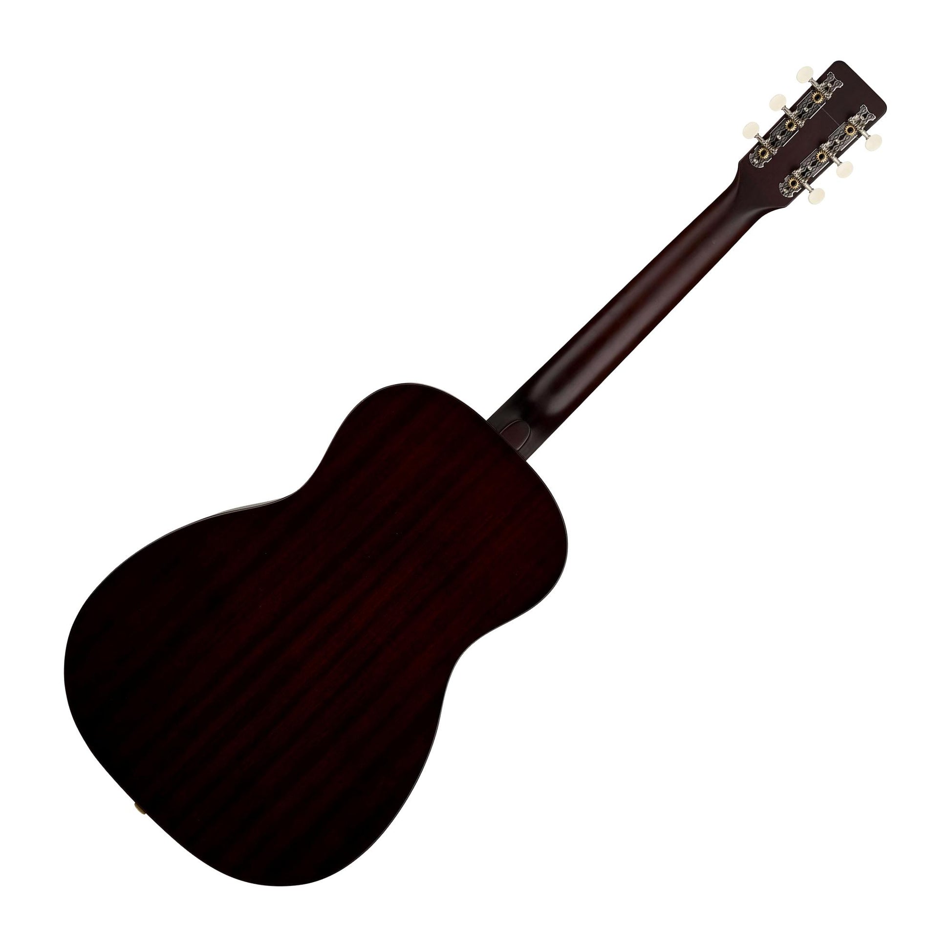 The X-braced body is crafted with a solid spruce top and laminated sapele back and sides for a crisp, clear tone with plenty of warmth and presence. The easy playing “C”-shaped neck presents an inviting feel for hours of old-timey inspiration. Period-correct details such as a vintage-style pinned bridge, “G”-graphic pickguard, painted pinstripe purfling, 3-on-a-plate open-gear tuning machines and oversized dot fingerboard inlays combine for a nostalgic personality destined for any barnburner or jamboree.