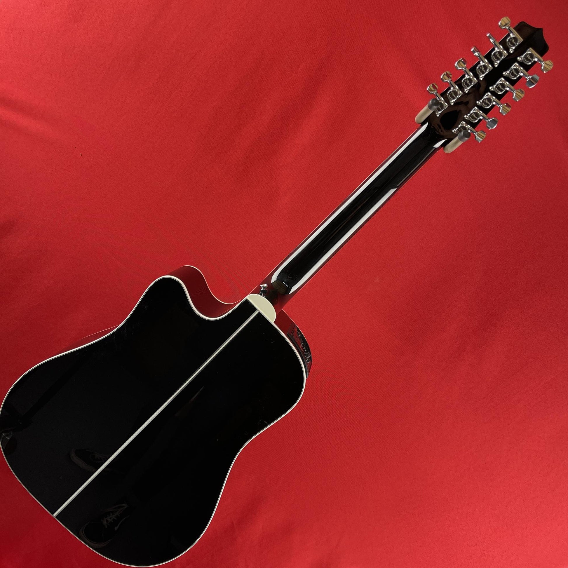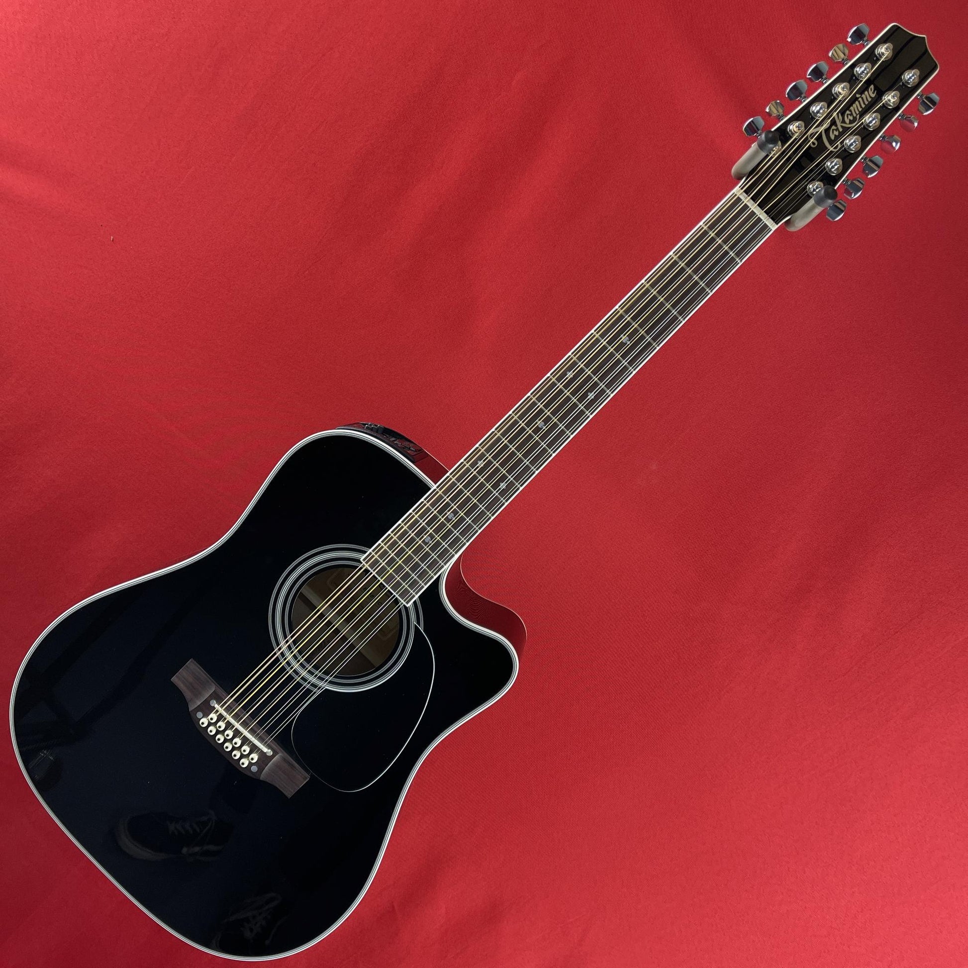 The EF381SC 12-string dreadnought is handcrafted in our pro series facility that has been building precision quality instruments over five decades. The versatility of this guitar begins with its solid cedar top that can play sweet mellow passages or power chords with equal ability. The maple back and sides are a perfect reflector for the tone generated by the soundboard, while the gloss black finish looks great under the stage lights. The mahogany neck is joined to the body with a traditional, ultra strong dovetail joint. Includes Takamine's CT4B II preamp system paired with the unique Palathetic under-saddle pickup for peerless amplified response. The highly acclaimed CT4B II preamp system with three-band EQ, volume control and built-in tuner.