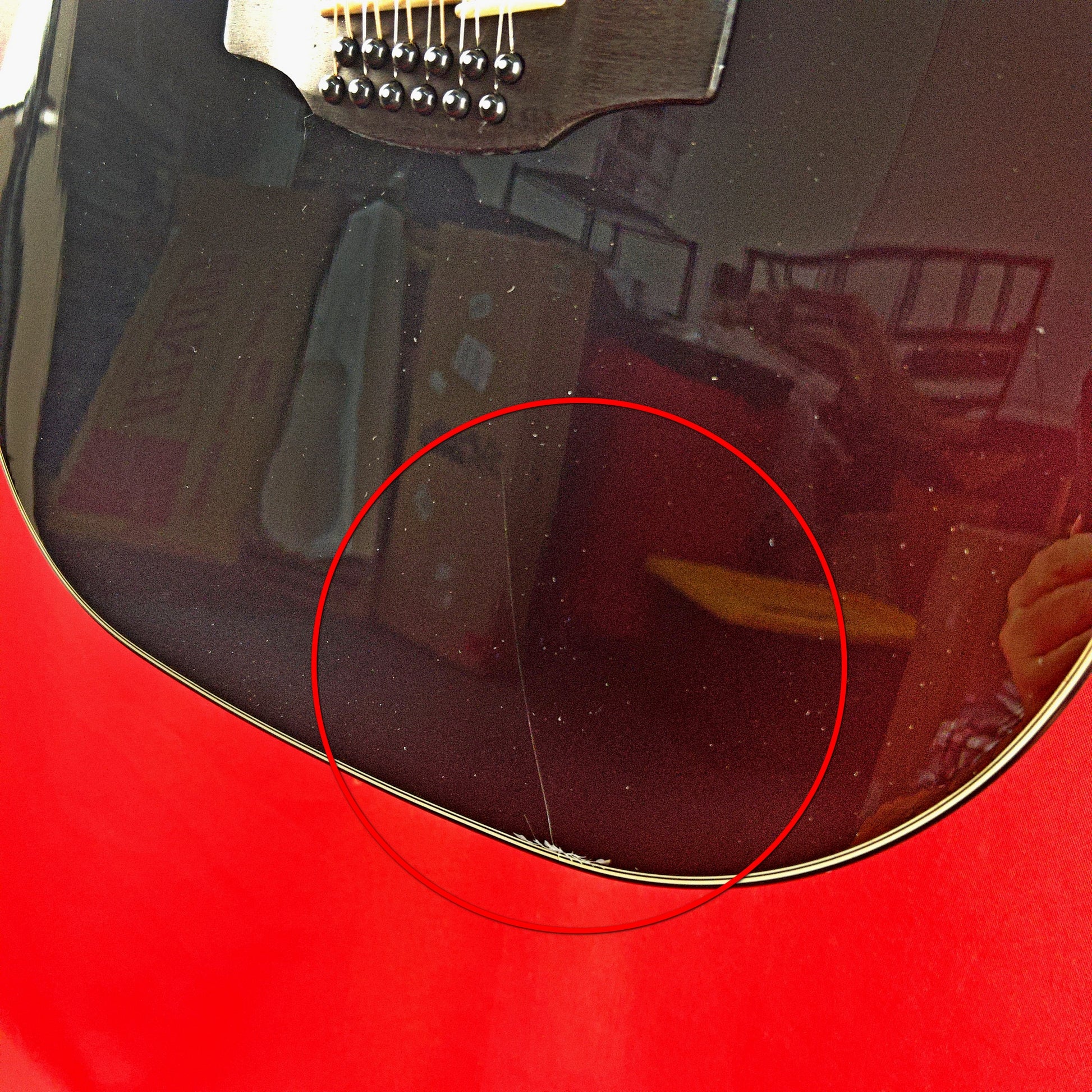 (Unit has a crack and scratch on the lower front side of the body, beneath the bridge.)